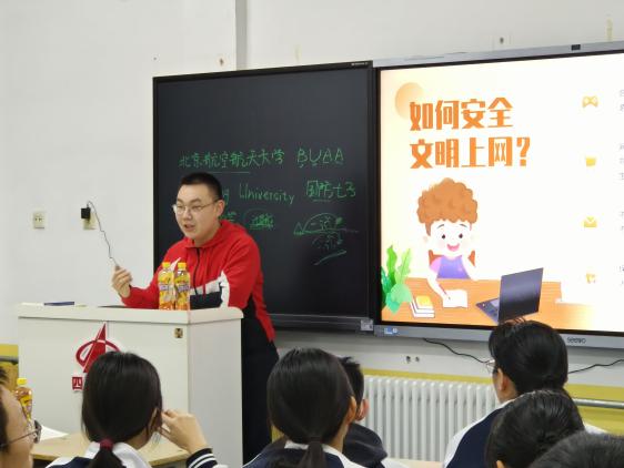 黑板與大屏幕上,勾勒出了北航學術環(huán)境的剪影;學生們手中翻閱的傳單上,描繪出了北航校園生活的愉悅。我們在這次宣講中有著充足的人手、資源與準備時間,因此活動開展的非常順利。北航的大類招生政策,7個書院,沈元學院小班制,頂尖工科,一流理科,精品文科,都在吸引著想要進步的同學們的目光;三校區(qū)制,廣袤的學校面積,新北宿舍剪影,社團活動,科研經費,也都展現出了北航的資金充足,實力雄厚;自習室一角,圖書館照片,燈火通明的新主樓,風扇轟鳴的實驗室,也在訴說著北航濃厚的學術氛圍。幾頁ppt翻下來,許多同學已經被勾起了對北航非常濃厚的興趣。課間休息,無數同學舉手發(fā)問,踴躍地表達自己對于未來的規(guī)劃與暢想……