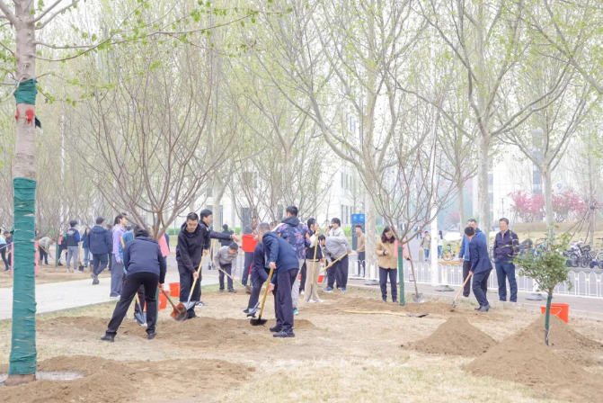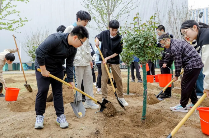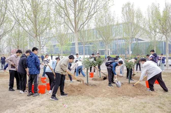 植樹現(xiàn)場(chǎng),勞動(dòng)場(chǎng)面繁忙有序,大家挖坑、立苗、填土、澆水,合力栽下30株優(yōu)質(zhì)樹苗,包括紅楓、紅梅、高桿月季等樹種,為沙河校園新添一片觀賞區(qū)域。