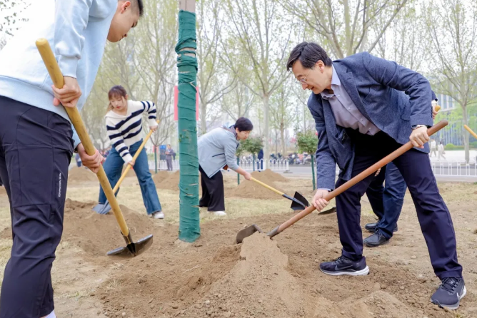 春回大地,草木逢春,植樹播綠正當(dāng)時(shí)。4月12日上午,黨委書記趙長(zhǎng)祿,校長(zhǎng)王云鵬,黨委副書記、紀(jì)委書記何新洲,副校長(zhǎng)劉樹春,黨委副書記程波,副校長(zhǎng)呂衛(wèi)鋒,黨委副書記楊立軍,副校長(zhǎng)趙巍勝、呂金虎、鄧怡等一行來到沙河校區(qū)八號(hào)樓東側(cè)綠地,和師生一同開展義務(wù)植樹活動(dòng),共同為沙河校區(qū)植樹添綠。
