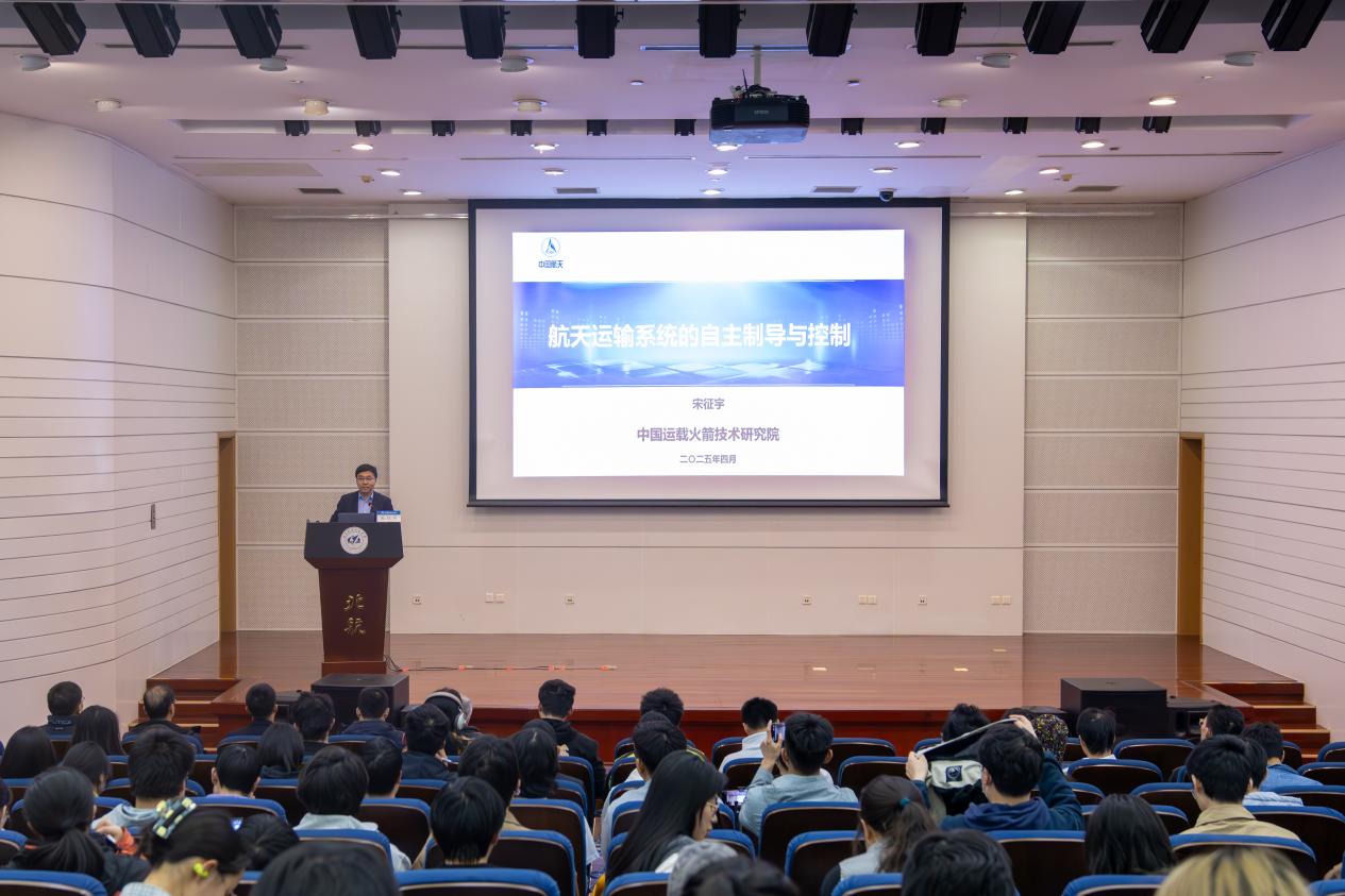 在講座中,宋征宇總師系統(tǒng)闡述了航天運輸系統(tǒng)的自主制導與控制技術的理論發(fā)展、工程實踐及未來展望,為在場師生帶來了一堂生動而富有啟發(fā)意義的學術盛宴。來自自動化科學與電氣工程學院等多個學院的一百余位師生一同聆聽了這場講座。