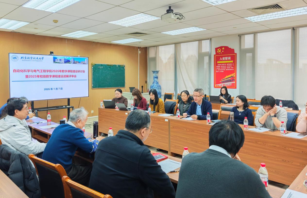 (通訊員 肖珊琪/審核 王薇)2026年1月7日上午,自動化科學(xué)與電氣工程學(xué)院2026年數(shù)字課程建設(shè)研討會暨2025年在建數(shù)字課程建設(shè)進(jìn)展評審會在新主樓E706會議室召開。會議由學(xué)院研究生教學(xué)副院長王薇主持,學(xué)院黨委書記鄭征、研究生院培養(yǎng)處副處長王磊、國家級教學(xué)名師樊尚春教授、原教育部自動化專業(yè)教學(xué)指導(dǎo)分委員會副主任委員申功璋教授、學(xué)院本研教育督導(dǎo)組組長王少萍教授、龔光紅教授、北京市教學(xué)名師王艷東教授、學(xué)堂在線平臺負(fù)責(zé)人、學(xué)院數(shù)字課程建設(shè)負(fù)責(zé)人、院督導(dǎo)組專家、基層教學(xué)組織負(fù)責(zé)人等20余人出席會議。