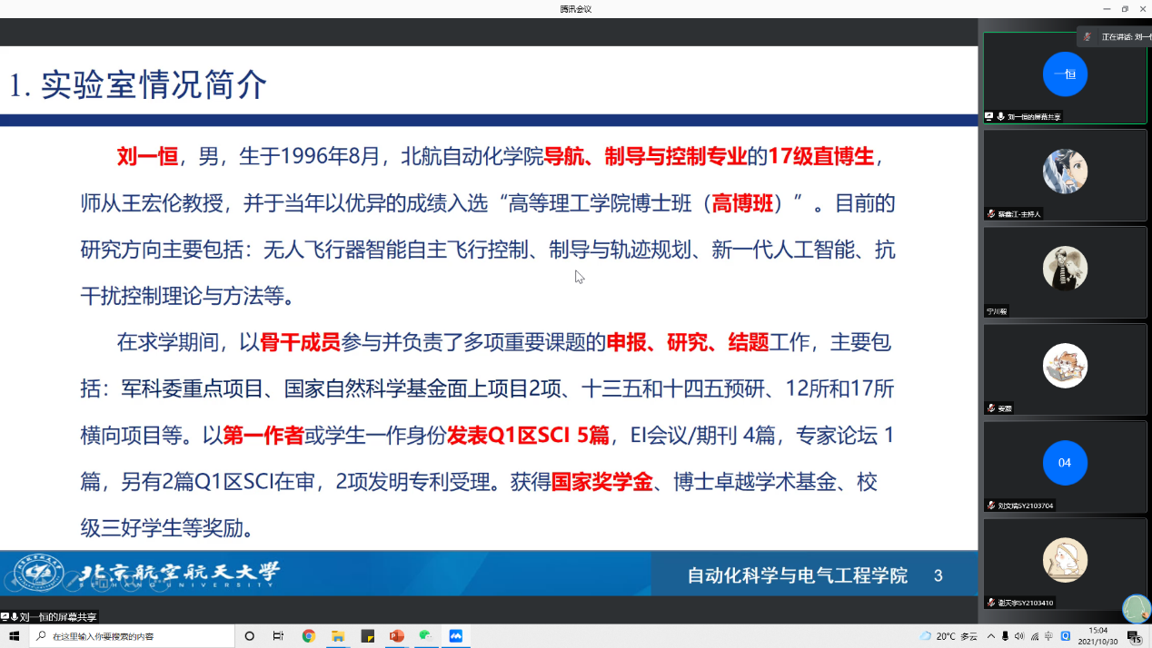 2021年10月30日下午,自動(dòng)化科學(xué)與電氣工程學(xué)院第二十期“云上博論”——博士研究生國(guó)獎(jiǎng)專(zhuān)場(chǎng)順利舉辦。本期“云上博論”邀請(qǐng)了自動(dòng)化科學(xué)與電氣工程學(xué)院2021年度博士生國(guó)家獎(jiǎng)學(xué)金獲得者劉一恒、張璟堯兩位同學(xué),分享他們的科研成果與科研經(jīng)驗(yàn),來(lái)自全校各學(xué)院近200位同學(xué)相聚云端,共享學(xué)術(shù)盛宴。