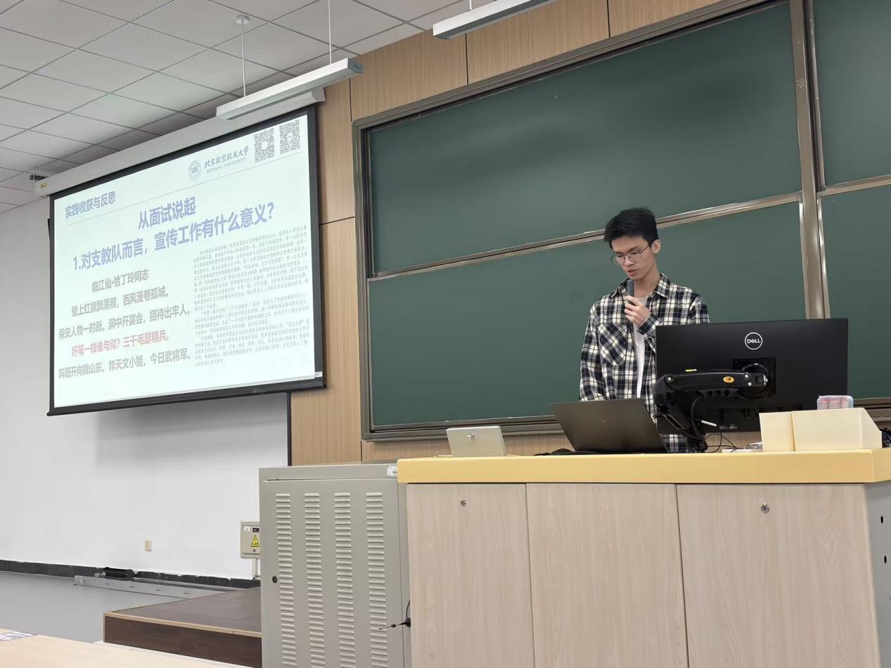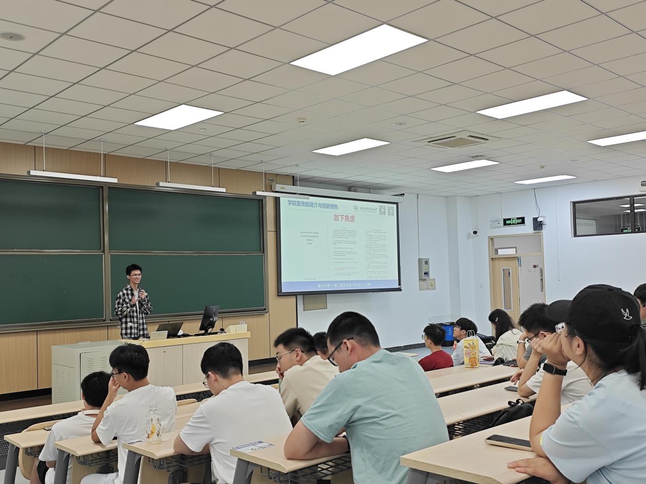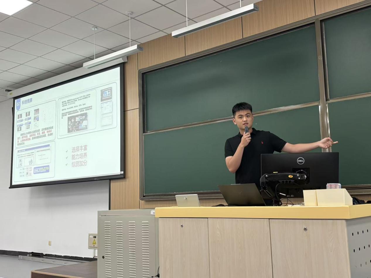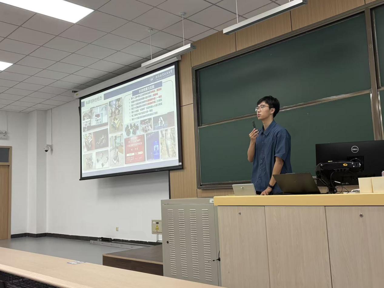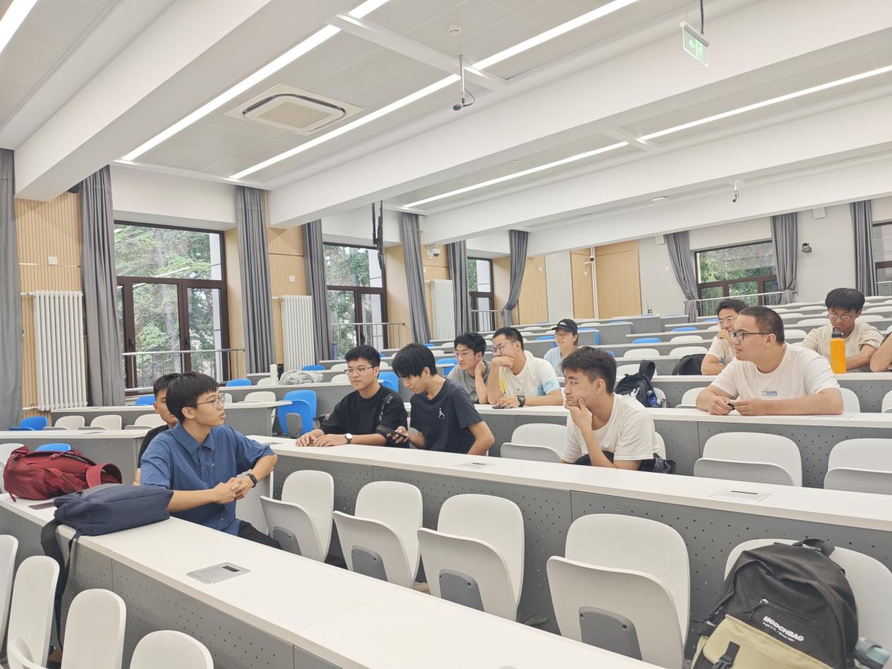 孫孟旭學(xué)長(zhǎng)則聚焦課程學(xué)習(xí)與競(jìng)賽科研展開分享。科創(chuàng)競(jìng)賽方面,孫學(xué)長(zhǎng)以他參加“卓翼杯”的經(jīng)驗(yàn)為例,討論競(jìng)賽在綜測(cè)加分之余對(duì)于個(gè)人能力的培養(yǎng)與提升。在進(jìn)組科研方面,他結(jié)合自身經(jīng)驗(yàn)給出實(shí)用建議:主動(dòng)通過學(xué)院平臺(tái)了解導(dǎo)師研究方向,大膽溝通爭(zhēng)取進(jìn)組機(jī)會(huì),在參與科研項(xiàng)目的過程中逐步培養(yǎng)科學(xué)思維、探索學(xué)科興趣點(diǎn)。同時(shí),作為院體育部副部長(zhǎng),他熱情號(hào)召同學(xué)們走出教室,在體育競(jìng)技中感受團(tuán)隊(duì)協(xié)作的力量,展現(xiàn)青春活力;而作為一名中共黨員,他也以身作則,積極投身社會(huì)實(shí)踐,用實(shí)際行動(dòng)踐行 “把論文寫在祖國(guó)大地上” 的初心,為同學(xué)們樹立了全面發(fā)展的榜樣。