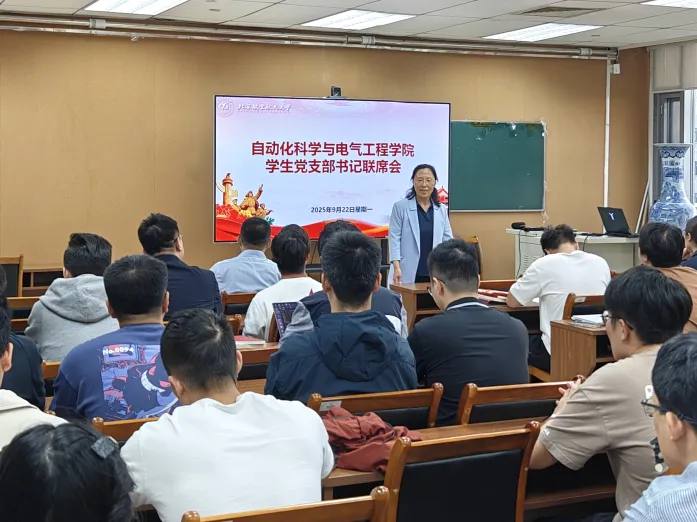 (通訊員 徐帆 付之翰)2025年9月22日,自動(dòng)化科學(xué)與電氣工程學(xué)院召開(kāi)2025年9月學(xué)生黨支部書(shū)記聯(lián)席會(huì)。會(huì)議圍繞9月學(xué)習(xí)內(nèi)容和近期黨建工作重點(diǎn)進(jìn)行了集中學(xué)習(xí)與工作部署。學(xué)院黨委書(shū)記王少萍,副書(shū)記賈子超,專(zhuān)職組織員李雪松,專(zhuān)職輔導(dǎo)員彭越、崔郎福出席會(huì)議,各學(xué)生黨支部書(shū)記、學(xué)生輔導(dǎo)員參加會(huì)議。會(huì)議由學(xué)院團(tuán)委書(shū)記喬嬌主持。