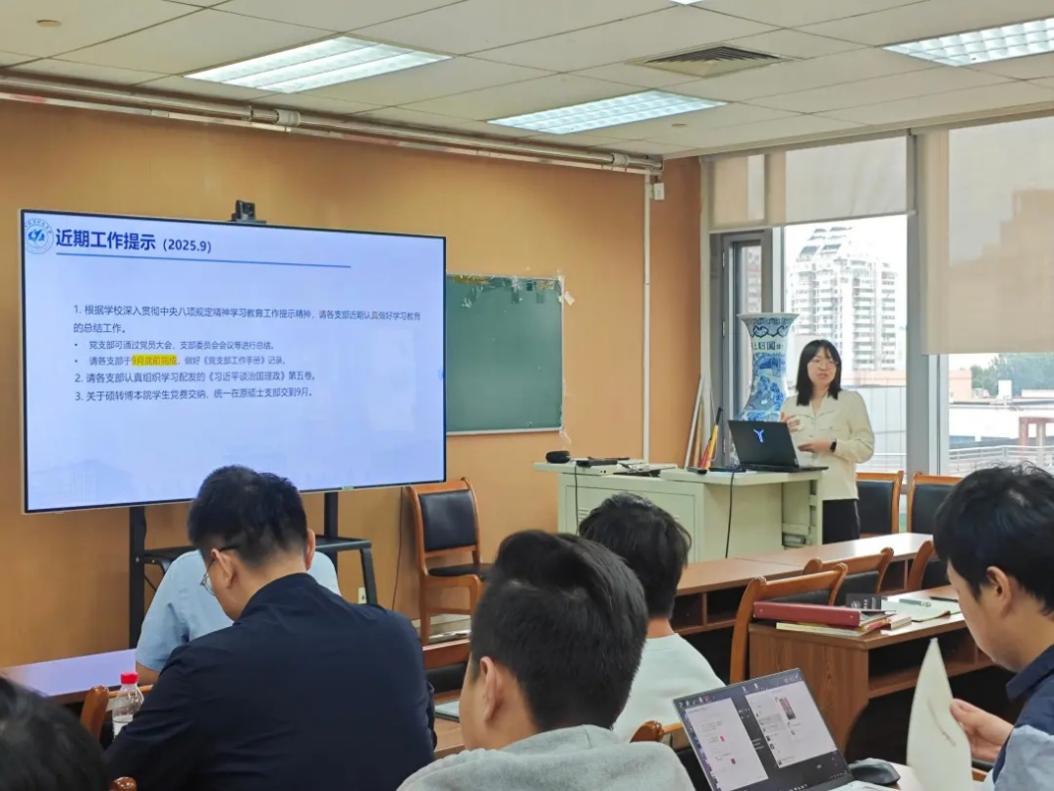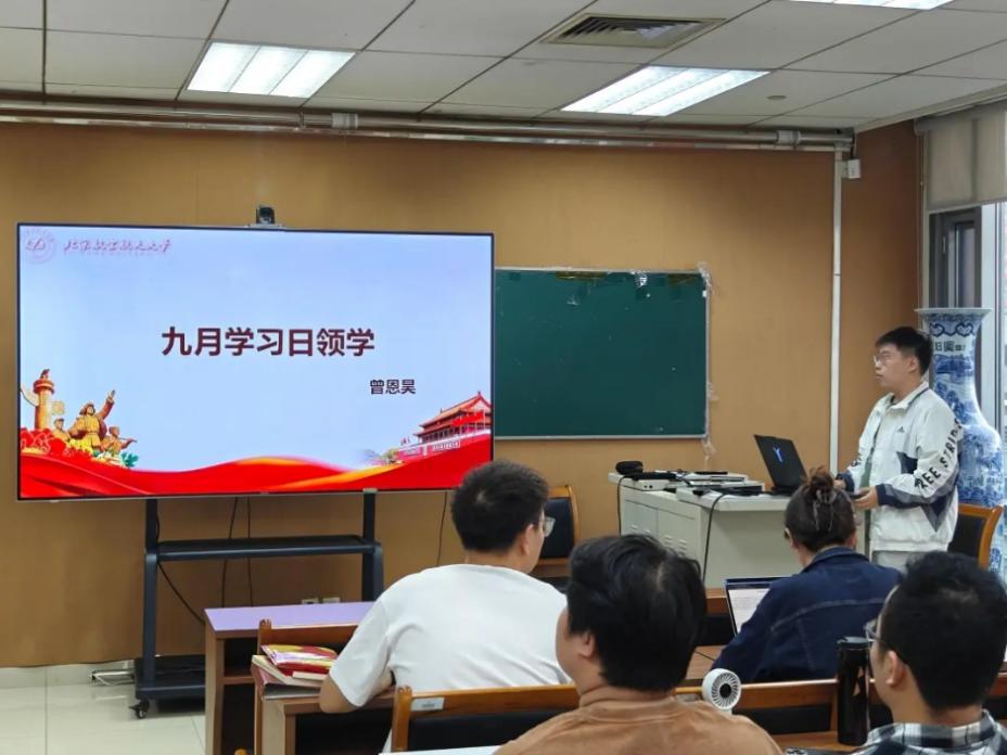 2024級(jí)碩士第一黨支部支部書(shū)記曾恩昊帶領(lǐng)與會(huì)人員開(kāi)展九月學(xué)習(xí)日活動(dòng),進(jìn)行理論學(xué)習(xí)環(huán)節(jié)。重點(diǎn)內(nèi)容包括“習(xí)近平總書(shū)記重要指示精神:鍥而不舍落實(shí)中央八項(xiàng)規(guī)定精神,推進(jìn)作風(fēng)建設(shè)常態(tài)化長(zhǎng)效化”、“紀(jì)念中國(guó)人民抗日戰(zhàn)爭(zhēng)暨世界反法西斯戰(zhàn)爭(zhēng)勝利80周年大會(huì)”等。理論學(xué)習(xí)內(nèi)容豐富、主題鮮明,引導(dǎo)各位黨支部書(shū)記進(jìn)一步筑牢思想根基,將理論學(xué)習(xí)成果轉(zhuǎn)化為推動(dòng)支部建設(shè)的實(shí)際行動(dòng)。