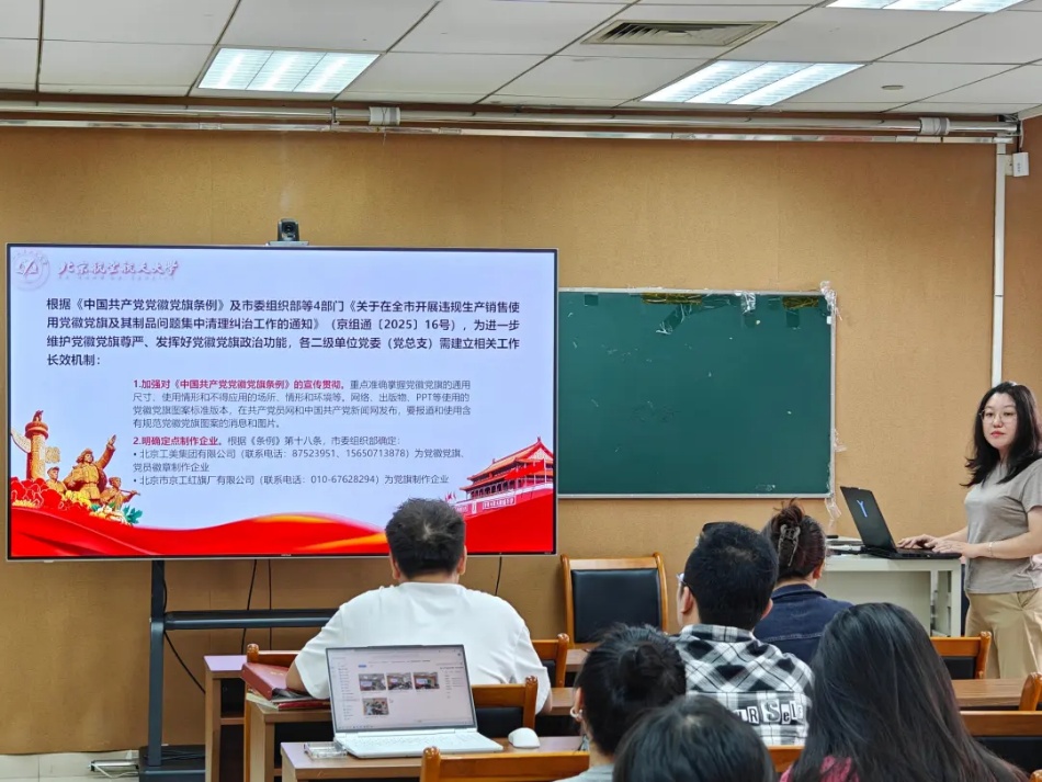 團(tuán)委書(shū)記喬嬌對(duì)黨徽黨旗的制作標(biāo)準(zhǔn)、使用規(guī)范、管理要求等核心內(nèi)容進(jìn)行解讀,明確使用禁區(qū)與注意事項(xiàng),并對(duì)近期重點(diǎn)工作做相關(guān)提醒。同時(shí),向黨支部書(shū)記進(jìn)一步明確了黨支部領(lǐng)取《人民日?qǐng)?bào)》、《求是》雜志等理論學(xué)習(xí)資料與新學(xué)年各支部理論學(xué)習(xí)輪值領(lǐng)學(xué)的相關(guān)規(guī)定與要求。