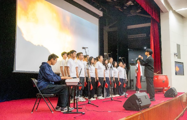 比賽過(guò)程中,18支參賽隊(duì)伍輪番登場(chǎng),用歌聲詮釋青春與理想,所選曲目涵蓋經(jīng)典愛(ài)國(guó)歌曲、流行勵(lì)志佳作等多元類型。燈光映照著每位演唱者專注的神情,各聲部相互配合、彼此呼應(yīng),從激昂的《少年中國(guó)說(shuō)》到深情的《我愛(ài)你中國(guó)》,從溫暖的《世界贈(zèng)予我的》到堅(jiān)定的《強(qiáng)軍戰(zhàn)歌》,參賽隊(duì)伍演唱的每一個(gè)音符都深深觸動(dòng)著觀眾的心弦。同學(xué)們?cè)谘莩腥谌胝媲閷?shí)感,部分班級(jí)還通過(guò)整齊的肢體動(dòng)作、飽滿的精神面貌增強(qiáng)舞臺(tái)表現(xiàn)力,讓合唱節(jié)目更具觀賞性。