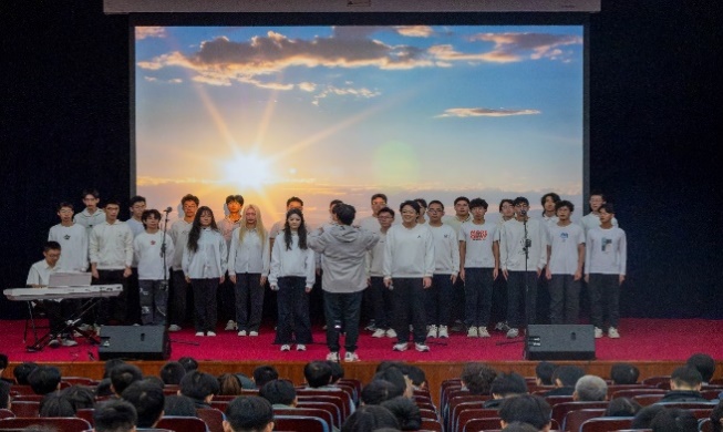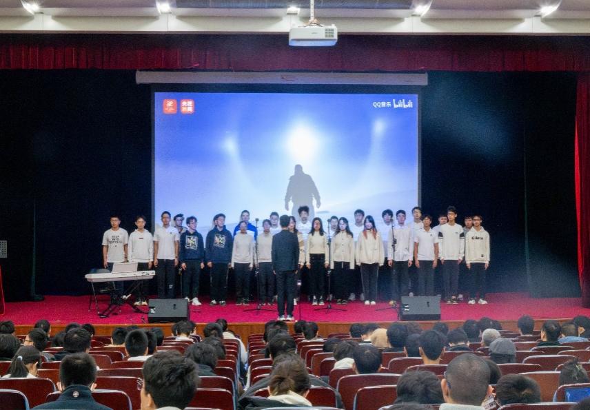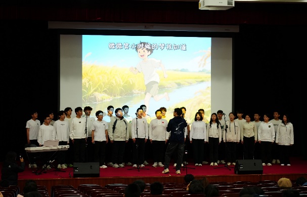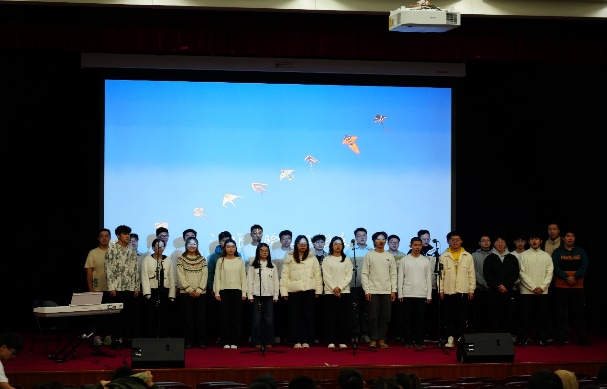 參賽班級(jí)演唱賽程告一段落后,學(xué)院飛天合唱團(tuán)作為此次比賽的特邀嘉賓,為現(xiàn)場(chǎng)觀眾帶來(lái)《我喜歡》《我們都是追夢(mèng)人》兩首合唱曲目。成立于1998年的飛天合唱團(tuán),至今已有26年歷史,曾多次參加國(guó)內(nèi)外演出活動(dòng)與合唱賽事并斬獲優(yōu)異成績(jī)。此次表演中,合唱團(tuán)成員以專業(yè)的演唱技巧、默契的聲部配合,搭建起跨越年齡與學(xué)段的情感交流橋梁,讓所有觀眾為之沉醉與感動(dòng)。